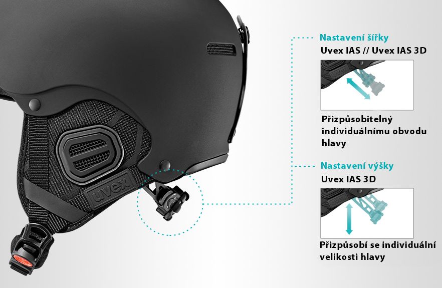 Hlavy se liší nejen obvodem, ale také výškou! Systém Uvex IAS 3D 3.0 přináší vynikající přesnost nastavení i na výšku pro dodatečné individuální nastavení a komfort.
