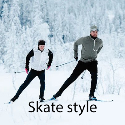 Skate lyžování, někdy označované jako bruslení, je dynamičtější styl určený především na upravené a dostatečně široké tratě. Vyžaduje pevnější povrch a více prostoru pro odraz do strany. Skate lyže jsou kratší než klasické a bývají také konstrukčně přizpůsobené vyšší dynamice jízdy.