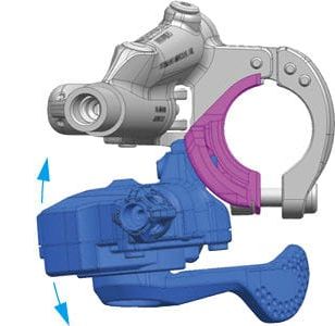 Tyto řadicí jednotky lze upevnit jak na vnitřní, tak na vnější straně brzdových pák. |